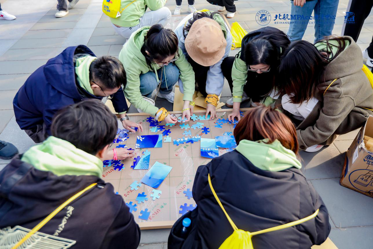 主题活动结束后,班级所有同学共同完成一幅拼图,在不断尝试、密切协作中战胜了“未知”的困难,最终拼成“启程逐梦,与未来相拥”的字样,激励着未来的求学之路。
