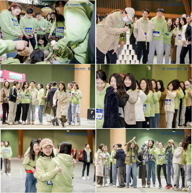 上午的破冰活动由“抓手指”“超音速”“爱的魔力转圈圈”“转圈搭杯”四个游戏组成,一个个精心设计的拓展训练项目激发了大家浓厚的兴趣与热情。团队成员们在共同配合下,攻克了一个个本以为很难完成的项目。“超音速”游戏考验团队协作能力,增强了队员之间的沟通能力;“爱的魔力转圈圈”考验了队员们的配合度;“转圈搭杯”考验队员自身的敏捷力和观察力,增强了团队归属感。每个拓展训练项目结束后大家共同分享成功的喜悦和挑战的激情,充分体会到团队信任、有效沟通、换位思考、合理组织、领导力、执行力和团队协作等团队价值所在。