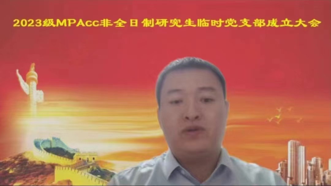 10月13日,北航2023级MPAcc非全日制研究生临时党支部成立大会以线上会议方式举行。会议由北航MPAcc教育中心副主任任晖老师主持,经济管理学院党委副书记高超老师出席会议并讲授党课,2023级MPAcc非全日制临时党支部全体党员参加。